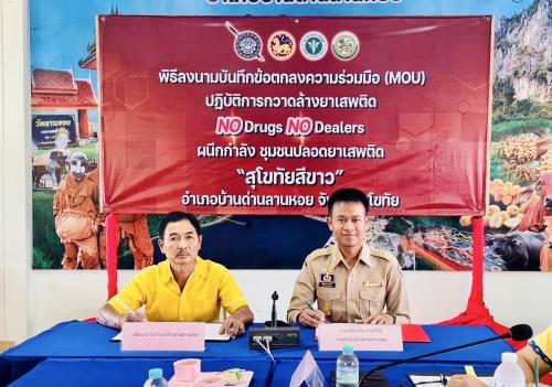 สพอ.บ้านด่านลานหอย ร่วมพิธีลงนามบันทึกข้อตกลงความร่วมมือ (MOU) ปฏิบัติการกวาดล้างยาเสพติด "No Drugs No Dealers" ผนึกกำลังชุมชมขนปลอดยาเสพติด