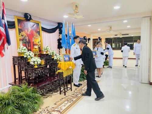 💠ในการนี้ ประธานจุดธูปเทียน เครื่องทองน้อย ถวายสักการะพระฉายาลักษณ์ สมเด็จพระนางเจ้าสิริกิติ์ พระบรมราชินีนาถ พระบรมราชชนนีพันปีหลวง และถวายความเคารพ กล่าวถวายราชสดุดี น้อมรำลึกในพระมหากรุณาธิคุณ และถวายความอาลัย ร่วมร้องเพลงสรรเสริญพระบารมี ยืนสงบนิ่งเพื่อแสดงความอาลัย